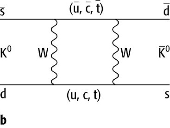. In den virtuellen Zwischenzuständen kommen die Eichbosonen der schwachen Wechselwirkung (W-Bosonen) und Quarks aus allen drei Generationen vor. Bisher fehlt jedoch der Beweis, daß die beobachtete CP-Verletzung tatsächlich auf diesen Mechanismus zurückzuführen ist, da die Phase δ noch nicht hinreichend genau bekannt ist. Es wurden daher noch zahlreiche andere Modelle zur Erklärung der CP-Verletzung vorgeschlagen, z.B. wurde von Wolfenstein eine fünfte, "superschwache Kraft" diskutiert.