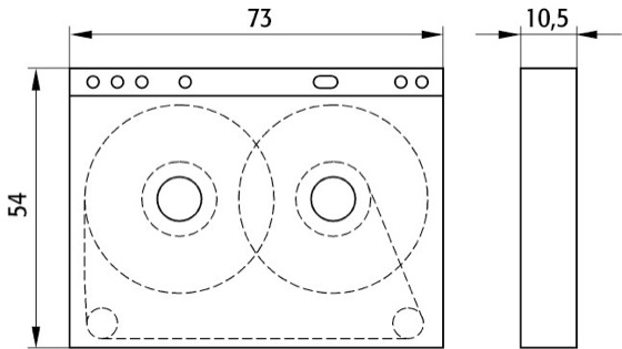DAT: Hauptabmessungen einer DAT-Kassette (in mm).