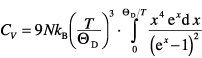 Für hohe Temperaturen (TΘD) tragen im Integranden nur sehr kleine x-Werte bei, so daß man ex entwickeln kann, woraus man schließlich das Dulong-Petitsche GesetzcV = 3 R erhält (cV: molare spezifische Wärmekapazität, R: allgemeine Gaskonstante). Bei tiefen Temperaturen (T ≪ςD) ist die obere Grenze groß, man kann daher ohne großen Fehler bis ∞ integrieren und erhält für das Integral den konstanten Wert 4π4/15. Für CV ergibt sich daraus