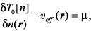 als einzigen, nicht exakt bestimmbaren Beitrag das Austauschkorrelationspotential v xc[n(r)] (Austauschkorrelationsenergie) enthält. Diese Darstellung des quantenmechanischen Vielteilchenproblems hat die Struktur eines Problems unabhängiger Teilchen, ist aber unverändert exakt. Auch damit ist allerdings die direkte Lösung von Gleichung (3) nicht möglich, weil die explizite Form von T0[n] als Funktional von n(r) bisher nicht bekannt ist. Geht man aber zur Orbitaldarstellung der kinetischen Energie T0[n] über und führt die Variation nach den Orbitalen statt nach der Dichte durch, erhält man die kanonische Form der Kohn-Sham(KS)-Gleichungen in Orbitaldarstellung: