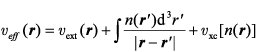 mit einem von v ext(r) unabhängigen und in diesem Sinn universellen Funktional FHK[n], das sich aus der kinetischen Energie T[n] der Elektronen und der Elektron-Elektron-Wechselwirkung Vee[n] zusammensetzt.
