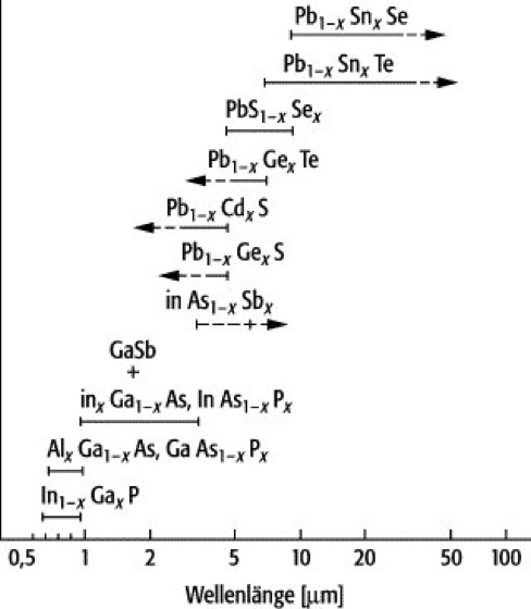 Diodenlaser 1: Übersichtsdarstellung der Spektralbereiche verschiedener Halbleiterlaser.