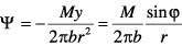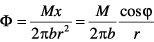 Dabei bedeuten z = x + iy komplexe Veränderliche; r, φ sind die Polarkoordinaten, b ist die Länge senkrecht zur xy-Ebene. Die Stromlinien sind Kreise, die die x-Achse im Nullpunkt tangieren. Die Potentiallinien stehen senkrecht darauf; es sind Kreise, die die y-Achse im Nullpunkt berühren. Die x -Achse wird Dipolachse genannt und gibt die Richtung des Quellen-Senken-Paares an, aus dem der Dipol durch Grenzübergang hervorgegangen ist. Die Geschwindigkeit