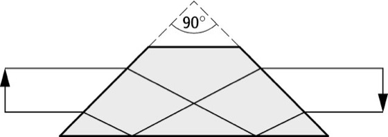 Dove-Prisma, Umkehrprisma, welches aus vier rechteckigen Flächen besteht und von zwei trapezförmigen Flächen mit 45°-Winkeln begrenzt wird (Abb.). Der Lichtstrahl wird im Prisma zweimal gebrochen und einmal reflektiert. Fällt das Licht unter einem Winkel von 45° ein, so ergibt sich eine einseitige Vertauschung des Bildes ohne Richtungsänderung. Das Dove-Prisma wird auch in Periskopen eingesetzt.
