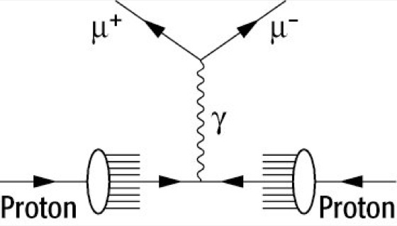 Drell-Yan-Prozeß, Lepton-Paarproduktion in hadronischen Streuprozessen, wie z.B. Proton-Proton- oder Proton-Antiproton-Kollisionen in Hochenergiebeschleunigern. Ein Beispiel ist die Reaktion