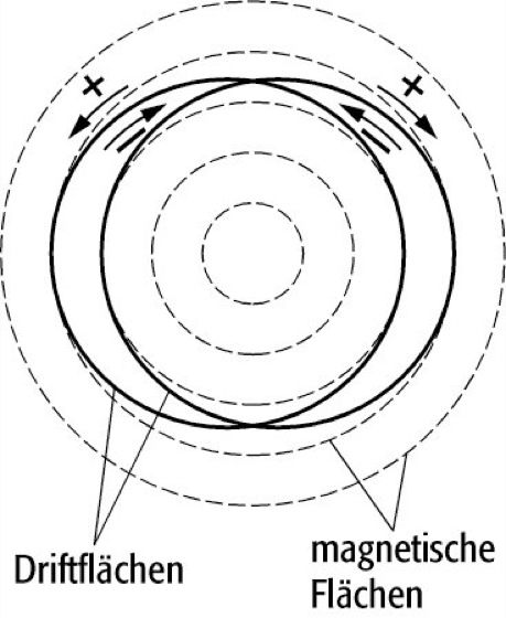 Driftfläche: Poloidale Projektion der Driftflächen je eines Ions und Elektrons.