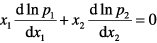 Ein Spezialfall der Duhem-Margules-Gleichung ist die Beziehung zwischen den Partialdrücken p1 und p2 im Dampf über einer kondensierten Mischung und den Molenbrüchen x1 und x2 in der flüssigen Phase: