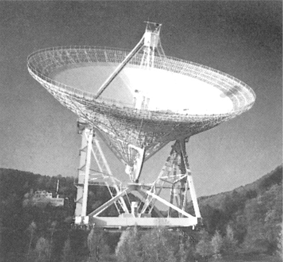 Effelsberg-Radioteleskop, das mit einem Durchmesser von 100m größte frei schwenkbare Radioteleskop der Erde bei Effelsberg in der Eifel (Abb.). Es wird vom Max-Planck-Institut für Radioastronomie in Bonn betrieben. Bei einer Wellenlänge von 2cm besitzt das Teleskop eine Winkelauflösung von einer Bogenminute. Die hohe Genauigkeit der Reflektoroberfläche erlaubt Beobachtungen bis herunter zu einer Wellenlänge von 0,5mm. Zu den Forschungsaktivitäten zählen insbesondere Radiokartierungen des Himmels, die Untersuchung von Sternentstehungsgebieten und Radiogalaxien, die Bestimmung von Isotopenhäufigkeiten und die Beobachtung interstellarer Magnetfelder. Darüber hinaus ist das Effelsberger Radioteleskop in verschiedene Netze der sog. Very Long Baseline Interferometry eingebunden.