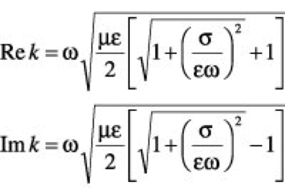 bestimmen. Der Realteil von k beschreibt die Transmissions-, der Imaginärteil die Dämpfungseigenschaften des Mediums für elektromagnetische Wellen. Für die Eindringtiefe d gilt d = 1/Imk.