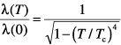 gegeben (mS, nS, eS: Masse, Anzahldichte und Ladung der supraleitenden Ladungsträger). Für die Temperaturabhängigkeit liefert das Zweiflüssigkeitsmodell die Näherung