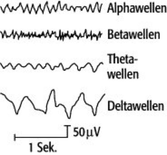 Elektroenzephalographie: Typische Formen von Hirnstromwellen.