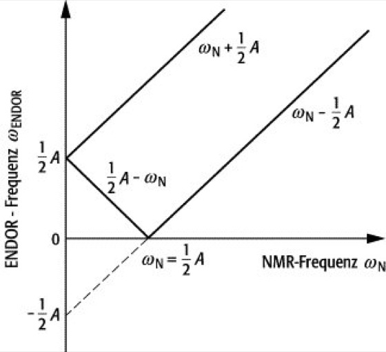 ENDOR 2: Abhängigkeit der ENDOR-Frequenz ωENDOR von der NMR-Frequenz ωNMR.