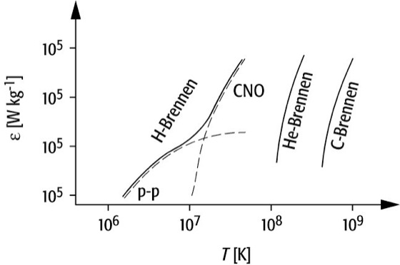 Energieerzeugung der Sterne: Abhängigkeit der thermonuklearen Reaktionen im Innern eines Sterns von der Temperatur.
