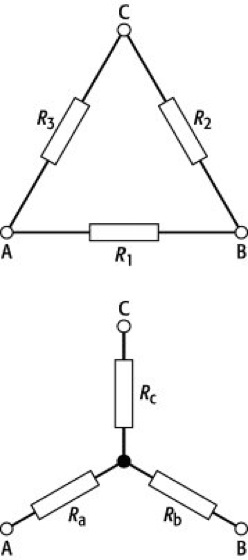 R1 = Ra + Rb + RaRb/Rc,