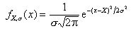 Bei dieser Funktion handelt es sich um eine Glockenkurve, die durch zwei Parameter charakterisiert ist: Sie ist beim Wert X (dem wahren Wert) zentriert und besitzt am Wendepunkt die Breite 2σ (Breitenparameter).