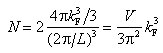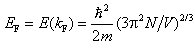 2)Statistische Physik: Fermi-Kante, obere Grenzenergie eines der Fermi-Dirac-Statistik gehorchenden Systems, z.B. eines freien Elektronengases, bei der Temperatur T = 0 K. Aufgrund des Pauli-Prinzips können N Elektronen in einem Volumen V = L3 nicht ein beliebig kleines Volumen im Impulsraum bzw. k-Raum einnehmen. Der k-Raum zerfällt daher in Zellen der Größe