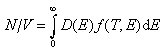 Bei höheren Temperaturen können auch Zustände oberhalb der Fermi-Energie besetzt weden. Die Besetzungswahrscheinlichkeit dafür ist durch die Fermi-Statistikf(E) gegeben (Fermi-Dirac-Statistik). Für quasifreie Elektronen in einem realen Kristallgitter muß Gl. (1) außerdem durch das Integral über die elektronische Zustandsdichte ersetzt werden: