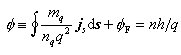 mq, nq und q sind Masse, Dichte und Ladung der supraleitenden Ladungsträger, der Integrationsweg verläuft längs einer im Supraleiter geschlossenen, sonst aber beliebig wählbaren Bahn. φF ist der Magnetfluß durch die von dieser Bahn begrenzte Fläche. Für einen supraleitenden Ring genügender Dicke läßt sich das Integral über die Suprastromdichte js zum Verschwinden bringen, wodurch sich obige Gleichung auf die Quantisierungsvorschrift φF = nh / q für den Fluß reduziert.