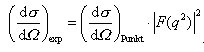 Der experimentell bestimmte Wirkungsquerschnitt für ein Streuexperiment an Kernen oder Nukleonen kann als Produkt geschrieben werden aus einen Anteil, der die Wechselwirkung mit einem punktförmigen Teilchen beschreibt, und dem Formfaktor: