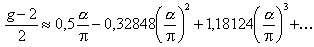 g/2 – 1 = ath = 0,001 159 652 411(166). Es stimmt mit dem experimentellen Wert gut überein: aexp = 0,001 159 652 209(31).