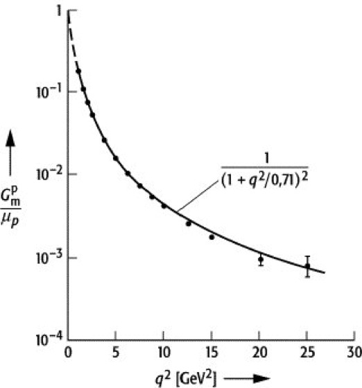 des Protons für hohe q2. Die beobachteten Werte werden gut durch die angepaßte Dipolgleichung beschrieben.