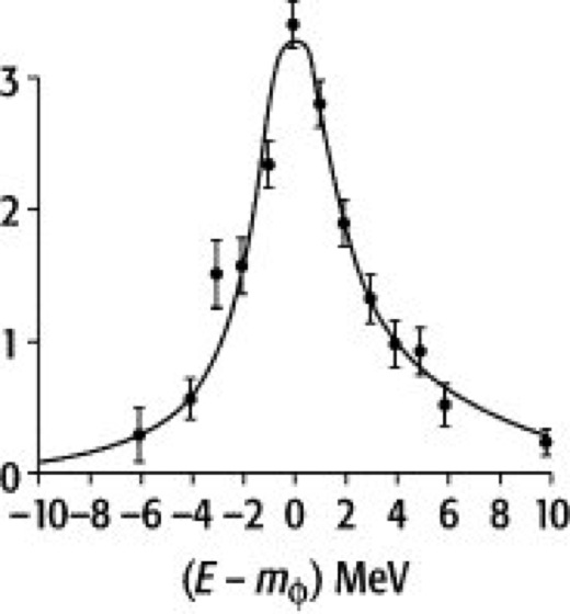 Formfaktor 3: elektromagnetischer Kaon-Formfaktor in der Nähe der Masse des φ-Mesons mφ.