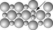 Frenkel-Defekt: Leerstellen-Zwischengitteratom-Paar (Pfeil).