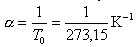 . Dabei ist α der thermische Volumenausdehnungskoeffizient und V0 das Volumen bei 0 °C. Für ein ideales Gas ist