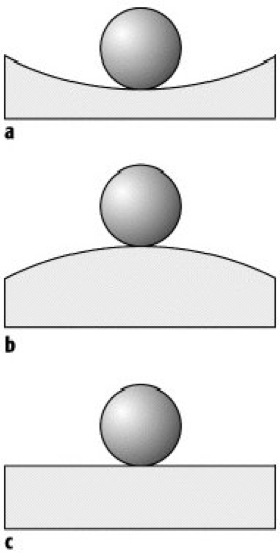 Gleichgewicht: stabiles (a), labiles (b) und indifferentes (c) Gleichgewicht.