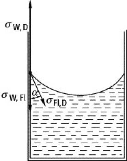 Grenzflächenspannung: Gleichgewicht zwischen Grenzflächenspannung und Schwerkraft.
