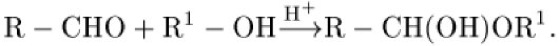 Halbacetale, Hemiacetale, organische Verbindungen, die bei der Addition eines Alkoholmoleküls R1OH an die Carbonylgruppe eines Aldehyds RCHO entsteht:
