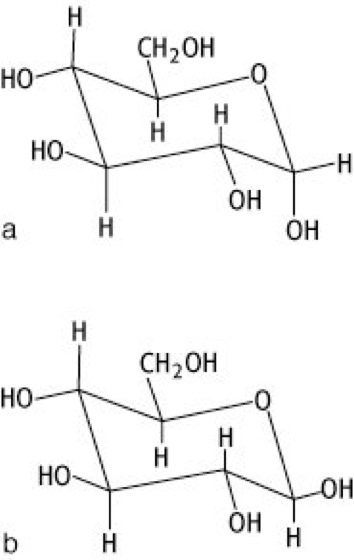 Unter basischen Bedingungen ist das Halbacetal stabil. In der Gegenwart von Säure wird nach Wasserabspaltung ein weiteres Alkoholmolekül addiert, wodurch ein Acetal gebildet wird. Aldosen, Monosaccharide mit einer Aldehydgruppe am C-Atom 1, tragen an den C-Atomen 5 und 6 eine Hydroxylgruppe und können durch intramolekulare Addition ein zyclisches Halbacetal bilden. Dabei entsteht aus dem Aldehydkohlenstoff ein neues chirales Zentrum, das anomere Kohlenstoffatom der Zucker. Man unterscheidet zwischen α- und β-Anomeren, z. B. α-D-Glucose und β-D-Glucose. Meistens wird die Bildung eines Sechsrings bevorzugt.