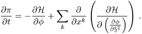 Hamilton-Dichte, Dichte, als deren Integral die Hamilton-Funktion für kontinuierliche Systeme oder Felder definiert werden kann. Um eine Hamilton-Dichte einzuführen, muß man die Feldkoordinaten mit einiger Strenge definieren. Dazu wird der Raum in infinitesimale Zellen unterteilt. Zu jeder Zelle gehört eine Systemkoordinate ϕ dr. Der zu dieser Koordinate konjugierte Impuls π ist üblicherweise durch die Funktionalableitung der Lagrange-Funktion L nach der Geschwindigkeitskomponente