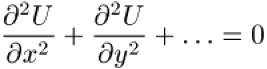 harmonische Funktionen, skalare, stetige und mindestens zweifach stetig differenzierbare Funktionen U(x,y,...) mehrerer Variablen x, y, ..., die der Laplace-Gleichung