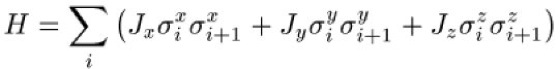 gegeben. Jx, Jy und Jz sind Kopplungskonstanten. Sind alle drei Kopplungskonstanten verschieden, so spricht man auch von der XYZ-Heisenberg-Spinkette (oder einfacher vom XYZ-Modell). Sind zwei Kopplungskonstanten gleich (beispielsweise Jx = Jy), so bezeichnet man das Modell als XXZ-Heisenberg-Spinkette (bzw. XXZ-Modell), sind alle drei Kopplungen identisch, so spricht man vom XXX-Modell.