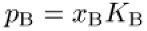Henrysches Gesetz: In realen Lösungen erfüllt der gelöste Stoff das Henrysche Gesetz bei kleinen Konzentrationen (ideal verdünnte Lösung). Die Tangente an die experimentell ermittelte Kurve (pB als Funktion von xB) im Punkt xB = 0 entspricht der Geraden, die mit Hilfe des Henryschen Gesetzes erhalten wird.
