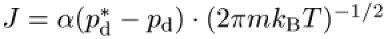 . Hierbei ist pd der zu T gehörige Gleichgewichtsdampfdruck, kB die Boltzmann-Konstante und α ein Korrekturfaktor, der Kondensations- oder Verdampfungskoeffizient. Die Formel geht, ohne einen bestimmten Verdampfungsmechanismus anzunehmen, davon aus, daß im Gleichgewicht die gleiche Anzahl von Molekülen eine Flüssigkeits- oder Kristalloberfläche verläßt wie auf ihr kondensiert.