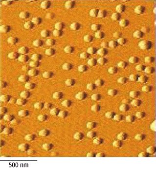 Heterostrukturen 8: Kraftmikroskopische Aufnahme von selbstordnenden Quantenpunkten aus Ge auf einem Si-Substrat.
