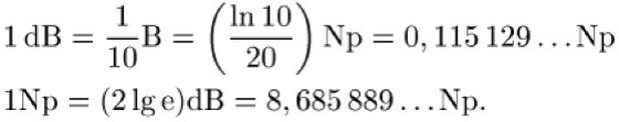 Hinweiswort, Kennwort, die bei der Angabe von logarithmierten Verhältnisse von Größen auftretenden Faktoren Np (für Neper), B (für Bel) und dB (für Dezibel). Zwischen diesen Faktoren bestehen die Beziehungen: