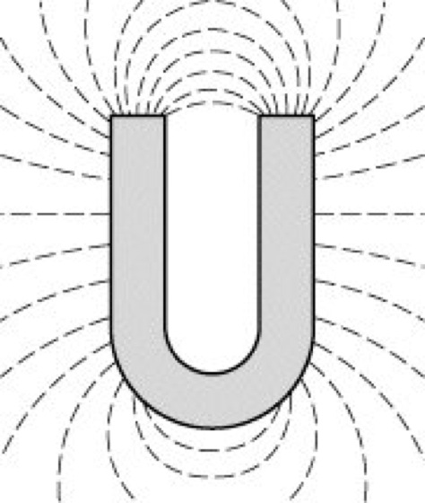 Hufeisenmagnet: Verlauf der Feldlinien.