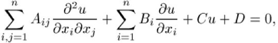 wobei die Aij, Bi, C und D differenzierbare Funktionen von (x1, ..., xn) sind und die quadratische Form