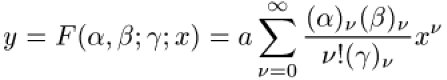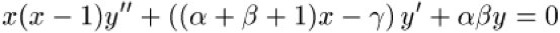 mit den drei Parametern α, β, γ. Wenn γ weder null noch eine ganze negative Zahl ist, wird die Gleichung durch die hypergeometrische Reihe
