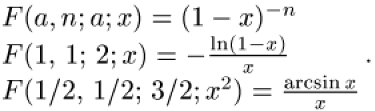 usw. mit der Γ-Funktion. Die hypergeometrische Reihe F(α, β; γ; x) ist im allgemeinen Fall nicht durch elementare Funktionen auszudrücken. Spezielle Lösungen sind