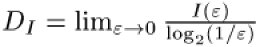 Kuben der Größe ε bestimmt, wobei pk die Wahrscheinlichkeit ist, mit der Punkte aus A in den k-ten Kubus fallen. Die Informationsdimension gehört zu den Rényi-Dimensionen und ist invariant bezüglich stetig differenzierbaren Koordinatensystemtransformationen (