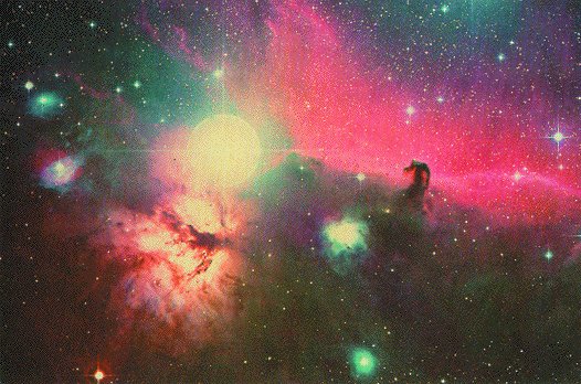 interstellare Materie 6: Der Pferdekopfnebel im Sternbild Orion ist ein auffälliges Beispiel einer Dunkelwolke vor dem Hintergrund einer diffusen HII-Region.