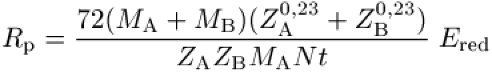 bestimmt. Darin sind M die Massen, Z die Kernladungszahlen, Nt die Flächendichte des Targets bzw. des Teilchenstrahls und Ered die reduzierte Energie der eindringenden Teilchen. Für Ered gilt 0,3 < Ered< 6. Bei höherer Energie E des Teilchenstrahls ist zudem der elektronische Energieverlust zu berücksichtigen. Für die mittlere Gesamtweglänge R gilt nun