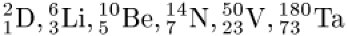 In dem Massenbereich der vier leichten uu-Kerne gibt es keine stabilen gg-Kerne, bei 50V bzw. 180Ta verbieten die hohen Spinunterschiede eine energetisch mögliche Umwandlung durch Betazerfall. Nur für A = 8 (Be) gibt es keinen stabilen gg-Kern; 8Be zerfällt durch Bildung von zwei α-Teilchen.