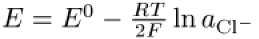 (E0: Normalpotential der Quecksilberelektrode, R: Gaskonstante, T: Temperatur in K, F: Faraday-Konstante und