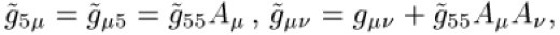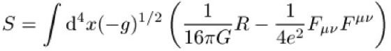unabhängig von x5 sind, g55 nur eine Konstante ist und die fünfte Dimension zu einem Zylinder kompaktifiziert ist mit einem Radius unterhalb jeder meßbaren Länge (Kompaktifizierung), läßt sich aus der fünfdimensionalen Einstein-Hilbert-Wirkung die Wirkung