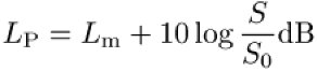 wobei Lm der zeitlich und räumlich gebildete Mittelwert des Schalldruckpegels auf der Meßfläche S (Kanalquerschnitt) ist (S0 = 1 m²). Die Meßgenauigkeit entspricht einem technischen Verfahren der Klasse 2 mit einer Standardabweichung von 2,5 dB (0,2-10 kHz) bzw. 3 dB (0,1-16 kHz).